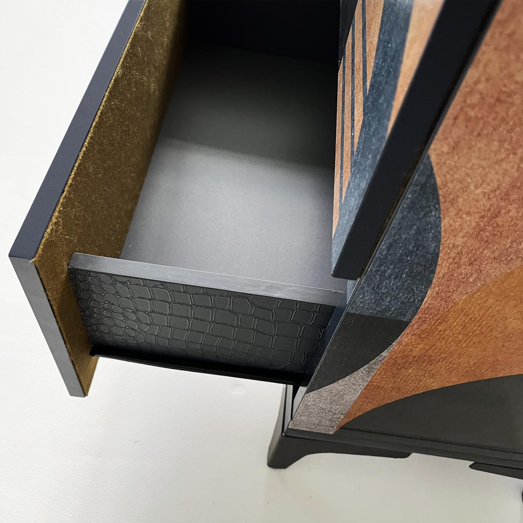 Introducing our recreated abstract mini-Chest of Drawers - a one-of-a-kind and environmentally-friendly furniture piece that perfectly combines sustainability with dynamic aesthetics. This upcycled compact chest present four intricately made compartments, each highlighting the beauty of geometric lines and texture through a personalized design. Small size is perfect storage solution for limited spaces and creates soft atmosphere of the room.
